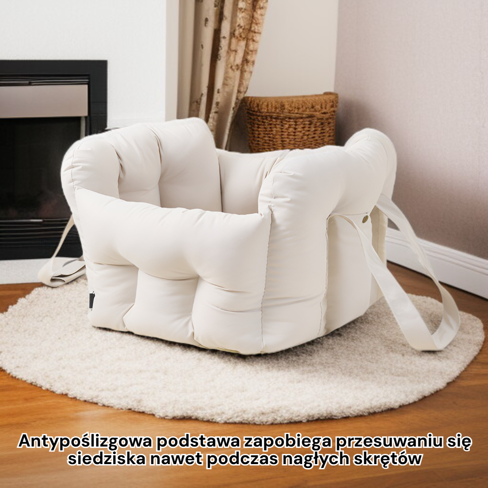 ● Antypoślizgowa podstawa zapobiega przesuwaniu się legowiska nawet podczas gwałtownych manewrów, zwiększając stabilność i ochronę zwierzaka.
